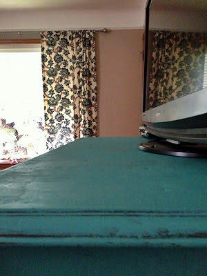 Fast forward about a month and a half. We brought in the happy turquoise TV dresser, which drastically changed the vibe of the room if I do say so myself. Then we got rid of the sofa and brought in this guy: